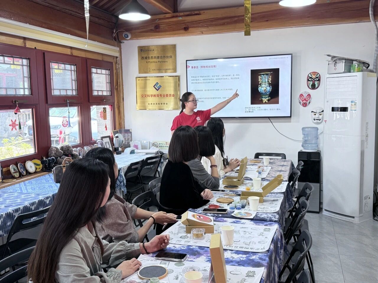 活動伊始,跟隨老師了解掐絲琺瑯的起源與發(fā)展,到其在不同歷史時期的藝術(shù)風(fēng)格,再到制作過程中“掐絲”“點藍”“燒藍”“打磨”等關(guān)鍵步驟的操作要點,并欣賞了造型獨特別致的精美藝術(shù)品。