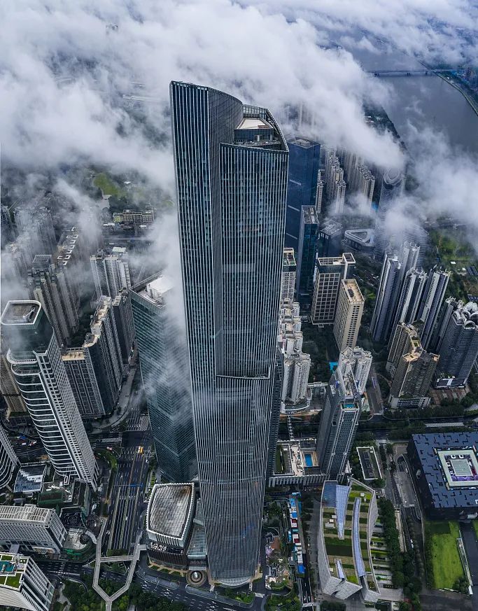 廣州周大福金融中心( K11 ATELIER ),總高530米。該樓配備了世界上最快的高速電梯,速度可達每小時45英里,在2016年全球十大新建摩天樓之一中排名第四。