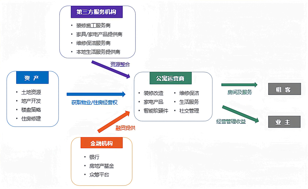 目前市場上主要的長租公寓有四類:以萬科、龍湖為代表的房企系、以自如為代表的中介系、以魔方為代表的創業系和以如家為代表的酒店系,四大主體共同塑造行業格局。每家企業對于進入長租市場的方式、節奏和運營體系不盡相同。