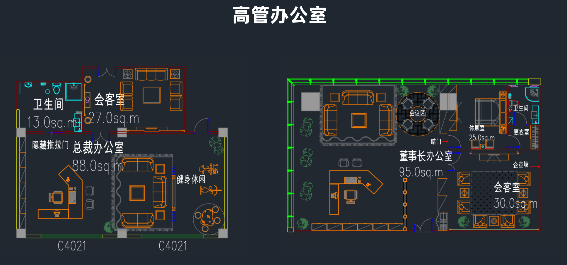功能分區(qū)明確:通常分為前臺(tái)接待區(qū)、辦公區(qū)、會(huì)議室、貴賓接待室、茶水間等功能區(qū)域,各區(qū)域布局合理,兼顧效率與隱私需求。