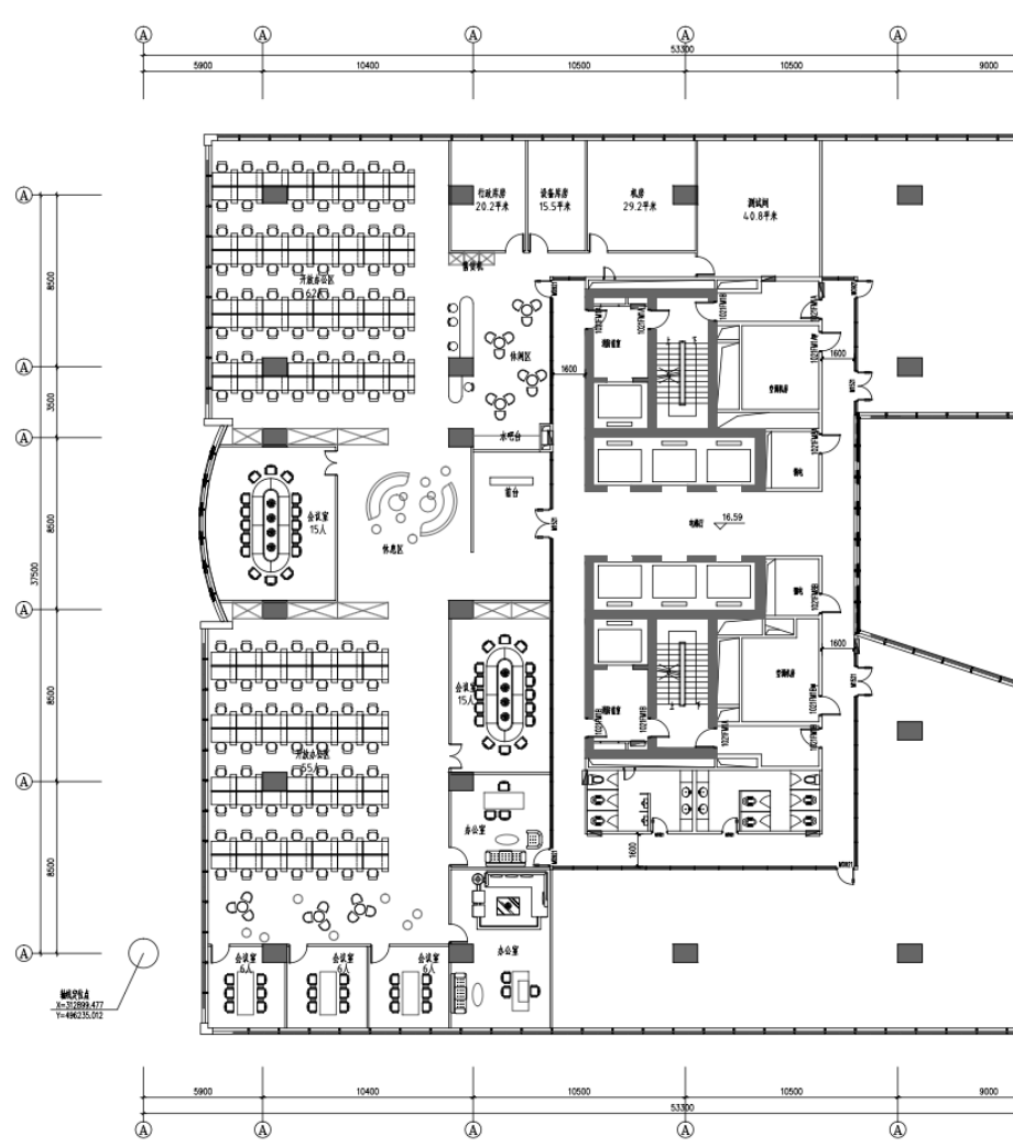 功能分區(qū)明確:前臺(tái)接待區(qū):通常位于入口處,設(shè)計(jì)簡潔大方,兼具展示品牌形象與接待客戶的功能;等候區(qū):與前臺(tái)相鄰,提供舒適的座椅和綠植,營造安靜、舒適的等待環(huán)境;開放式辦公區(qū):采用低隔斷或開放式布局,促進(jìn)員工之間的溝通與協(xié)作,同時(shí)配備充足的自然采光和綠植,提升工作舒適度;獨(dú)立辦公室:為合伙人設(shè)置,強(qiáng)調(diào)隱私性和專業(yè)性,通常位于空間深處或窗邊,便于接待客戶;會(huì)議室:根據(jù)規(guī)模和需求設(shè)置不同大小的會(huì)議室,配備智能設(shè)備和舒適的座椅,滿足會(huì)議、談判等需求;檔案室/資料庫:用于存放文件等資料,需具備良好的保密性和存儲(chǔ)條件。