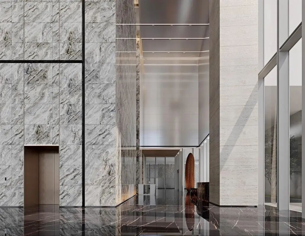 分為公共區域裝修和未來租戶的交付空間。包括天花吊頂、地面鋪裝、墻面涂料、門窗安裝、衛生間潔具安裝等。