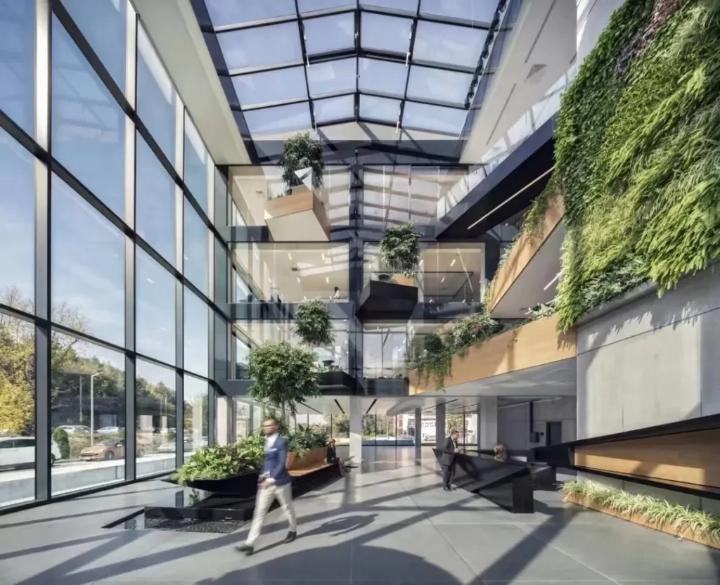 城市商務核心區(qū)寫字樓密集,登高而望皆是摩天大樓,穿梭在喧囂的城市中,兩點一線,靈活生態(tài)化辦公區(qū)是眾多企業(yè)的夢寐以求,企業(yè)對城市低密度辦公區(qū)域,花園式、視野開闊、綠意盎然的綠色獨立生態(tài)化辦公翹首企足……