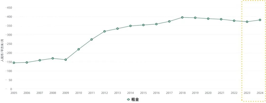 2022年北京寫字樓市場整體吸納量受到市場活躍度的影響,持續呈現下降趨勢,各商圈均有企業陸續退租,在2022年連續兩次受到疫情的重創,需求量收縮明顯,導致空置率進一步上升,租金在今年持續承壓呈現連續下降趨勢,同比去年全市整體租金下行3.27個百分點。