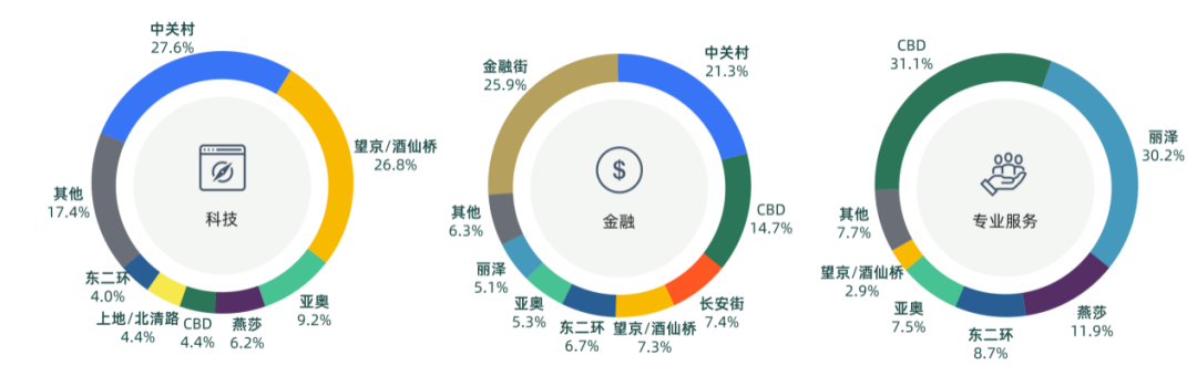 CBD及麗澤商圈良好的樓宇品質吸引了本季度六成的專業服務類企業進駐,麗澤商圈作為新興商圈,已經成為眾多專業服務類企業提升形象、降本增效的優選商圈。