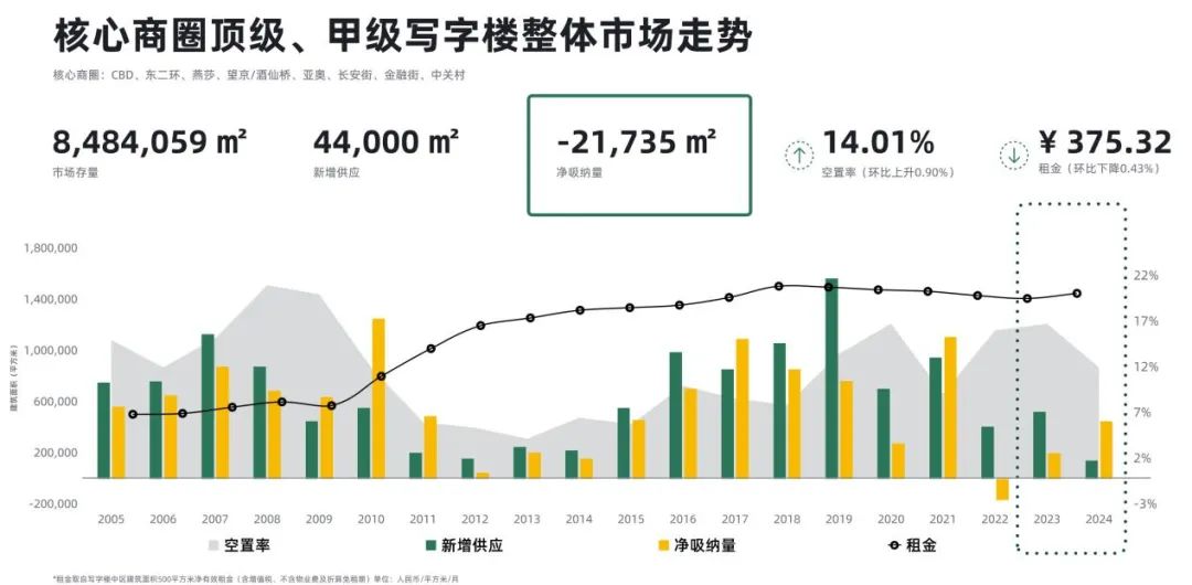 因2022年部分寫字樓項目受疫情影響延期交付,隨著2023年的到來北京寫字樓市場將迎來多個優質項目入市,隨之將迎來供應小高峰,預計全市寫字樓市場將有近170萬平方米的新增體量投放市場。而眾多現有項目也將面臨空置率持續上升的壓力,整體市場將更加導向租戶方,預測2023年又將是企業一次抄底的機會。