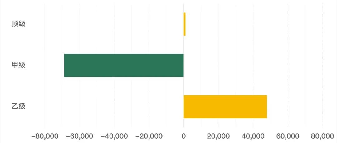 2023年第三季度,從樓宇等級成交面積來看,頂級、乙級寫字樓成交面積環比上季度有所上升,乙級寫字樓成交面積環比上季度上升近5萬平方米,甲級寫字樓成交面積環比上季度下降超過6萬平方米。