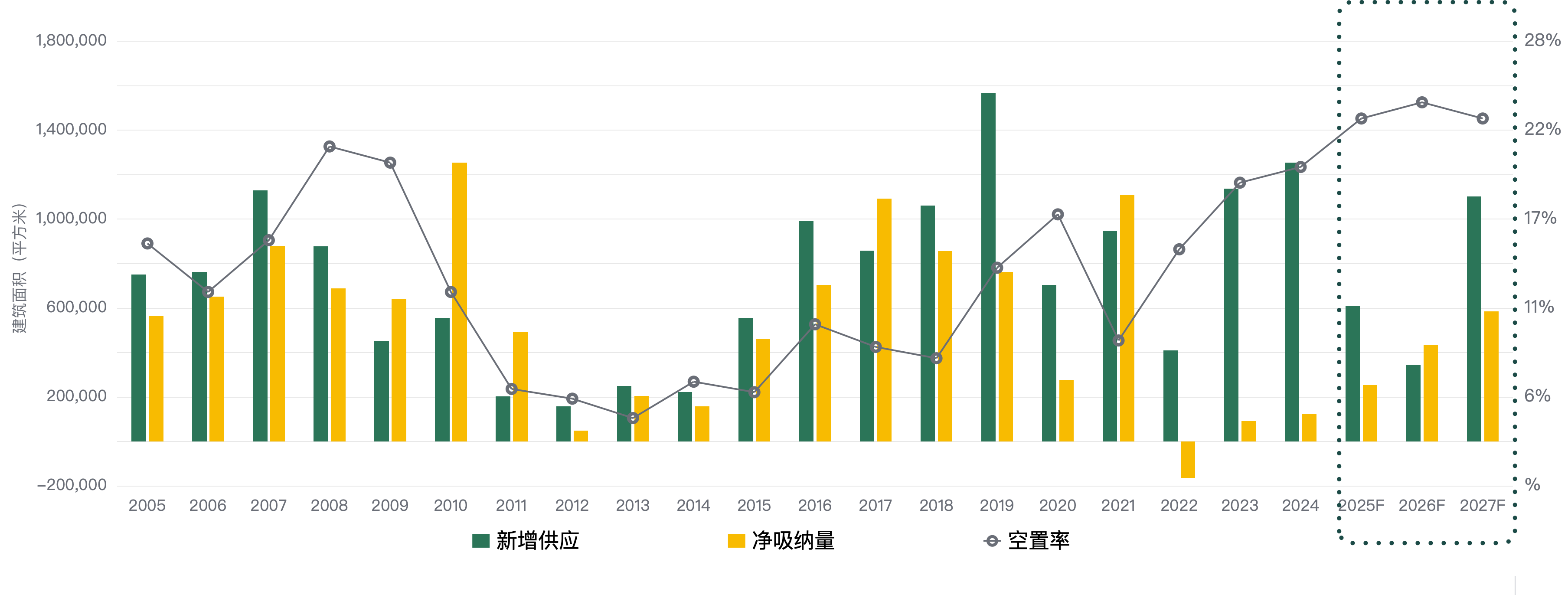 2024年全年投入市場的新增供應(yīng)量超過了120萬平方米,其中甲級寫字樓超過30萬平方米;部分開發(fā)商保持觀望態(tài)勢,將原計(jì)劃于年內(nèi)入市的新項(xiàng)目延后至2025年交付。